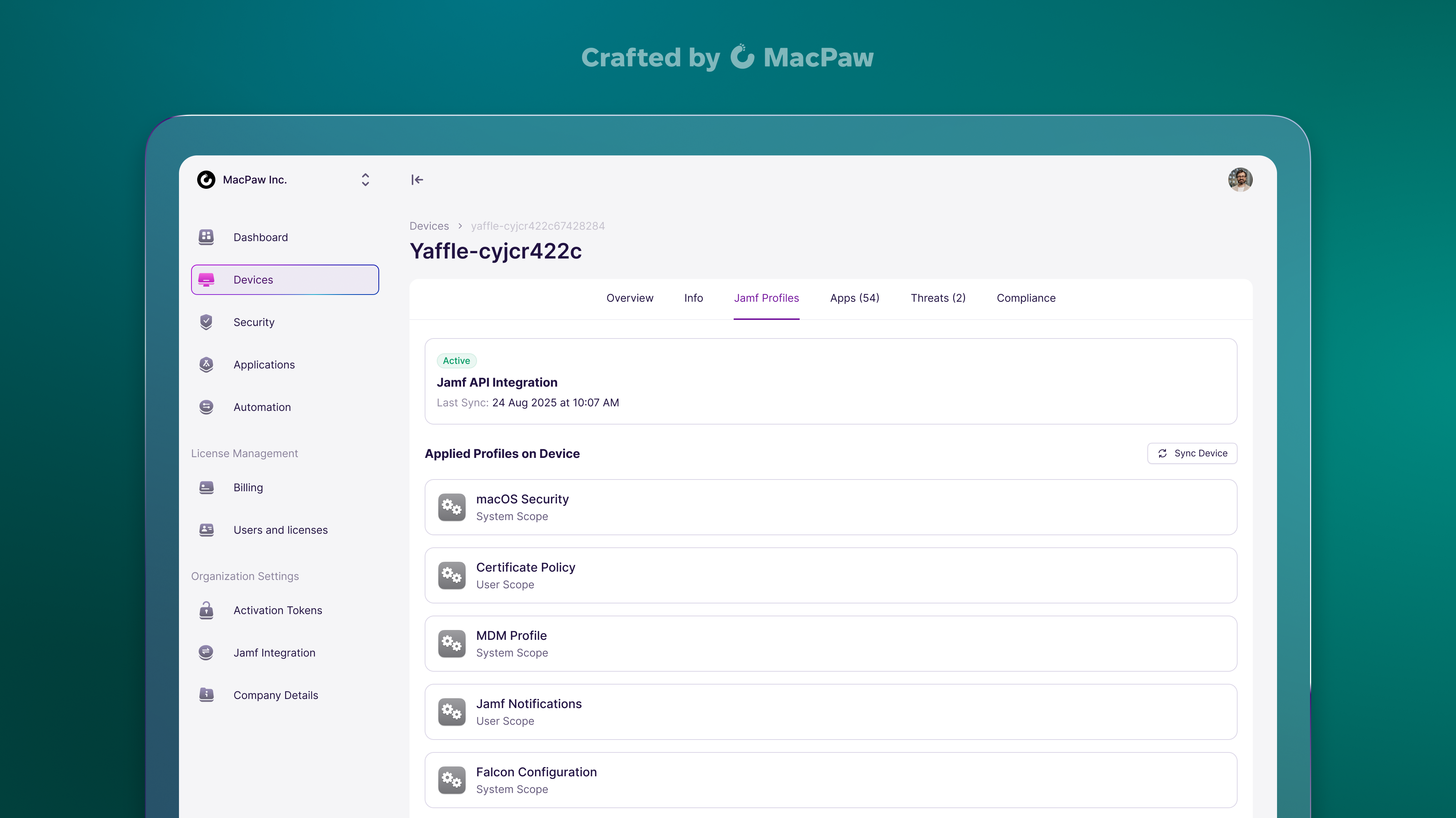Seamless distribution via Jamf — deploy, enroll, and manage along with your existing Mac management workflows