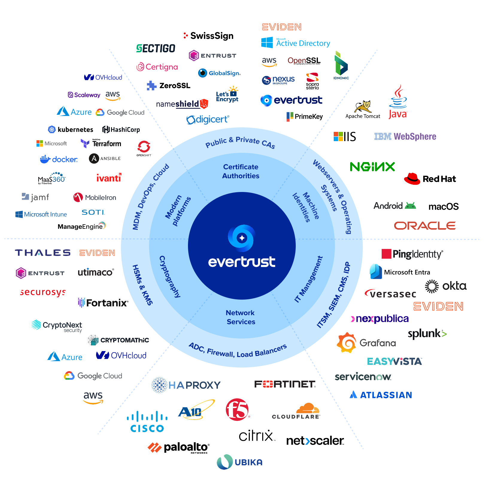 At Evertrust, we're helping organizations automate certificate operations while maintaining complete cryptographic governance through real-time visibility, policy enforcement, and compliance scoring based on industry standards (NIST, ANSSI, CA/B Forum…).