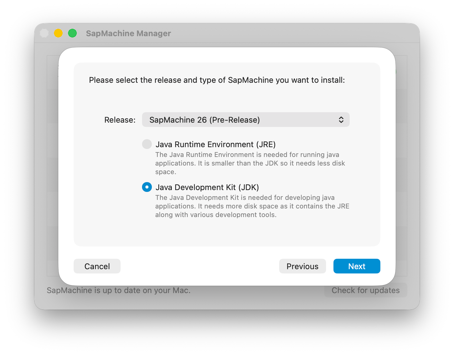 SapMachine Manager is the standard tool within SAP to install SapMachine on macOS.