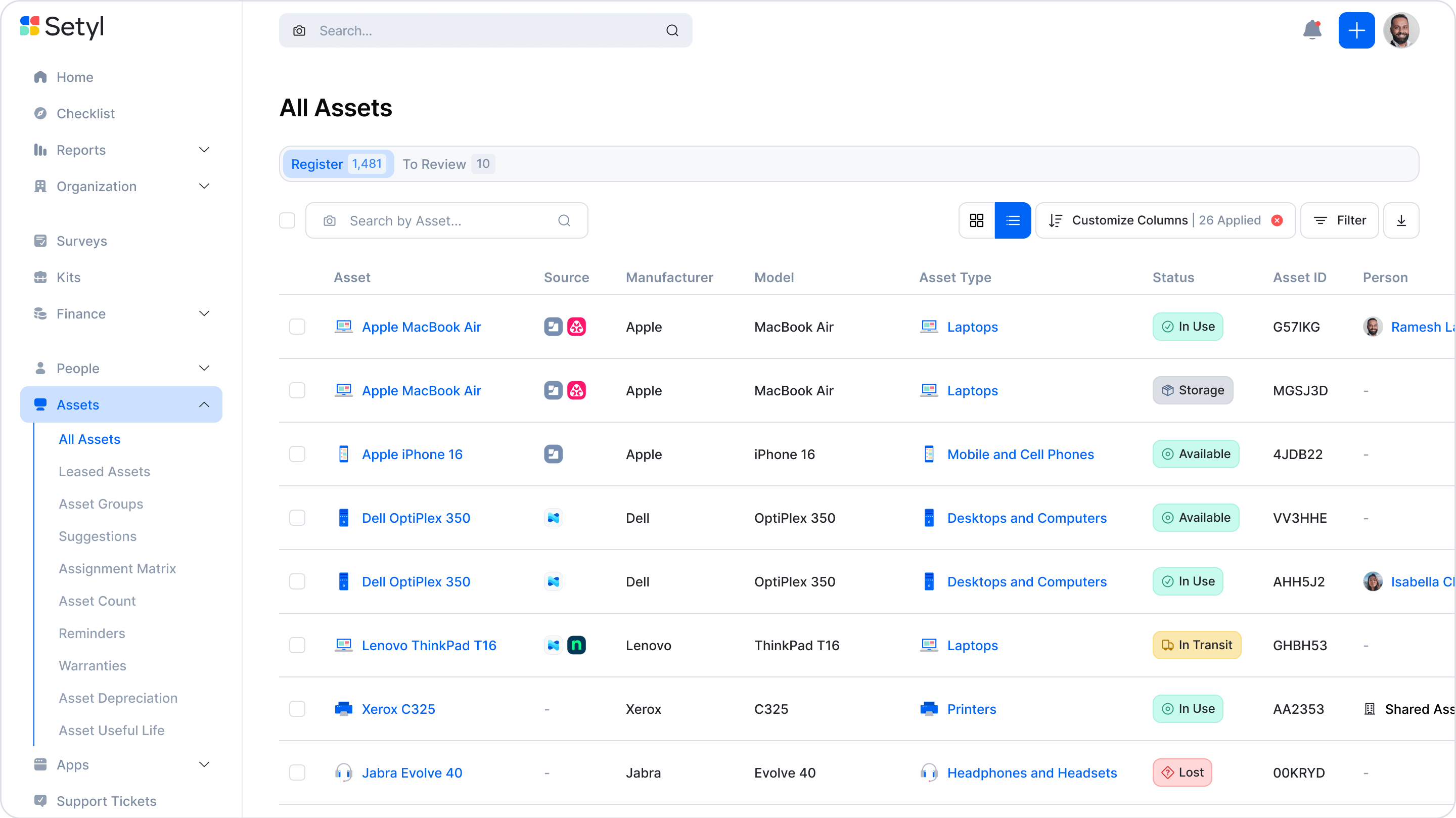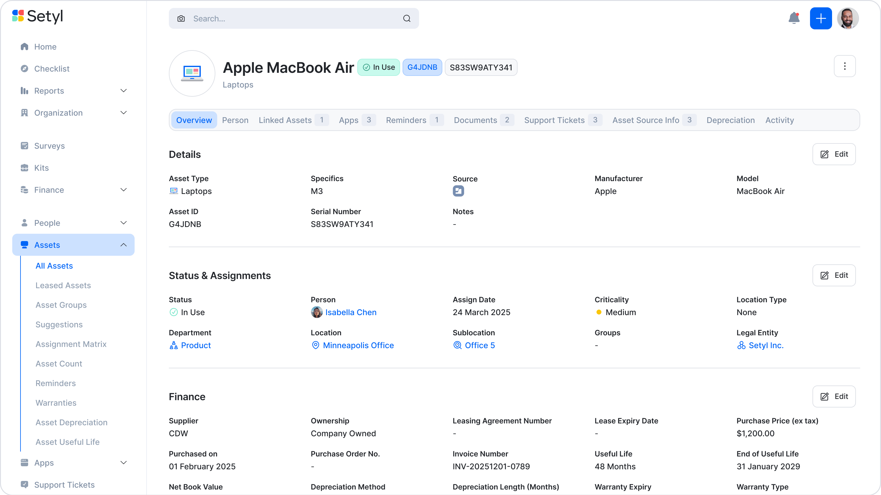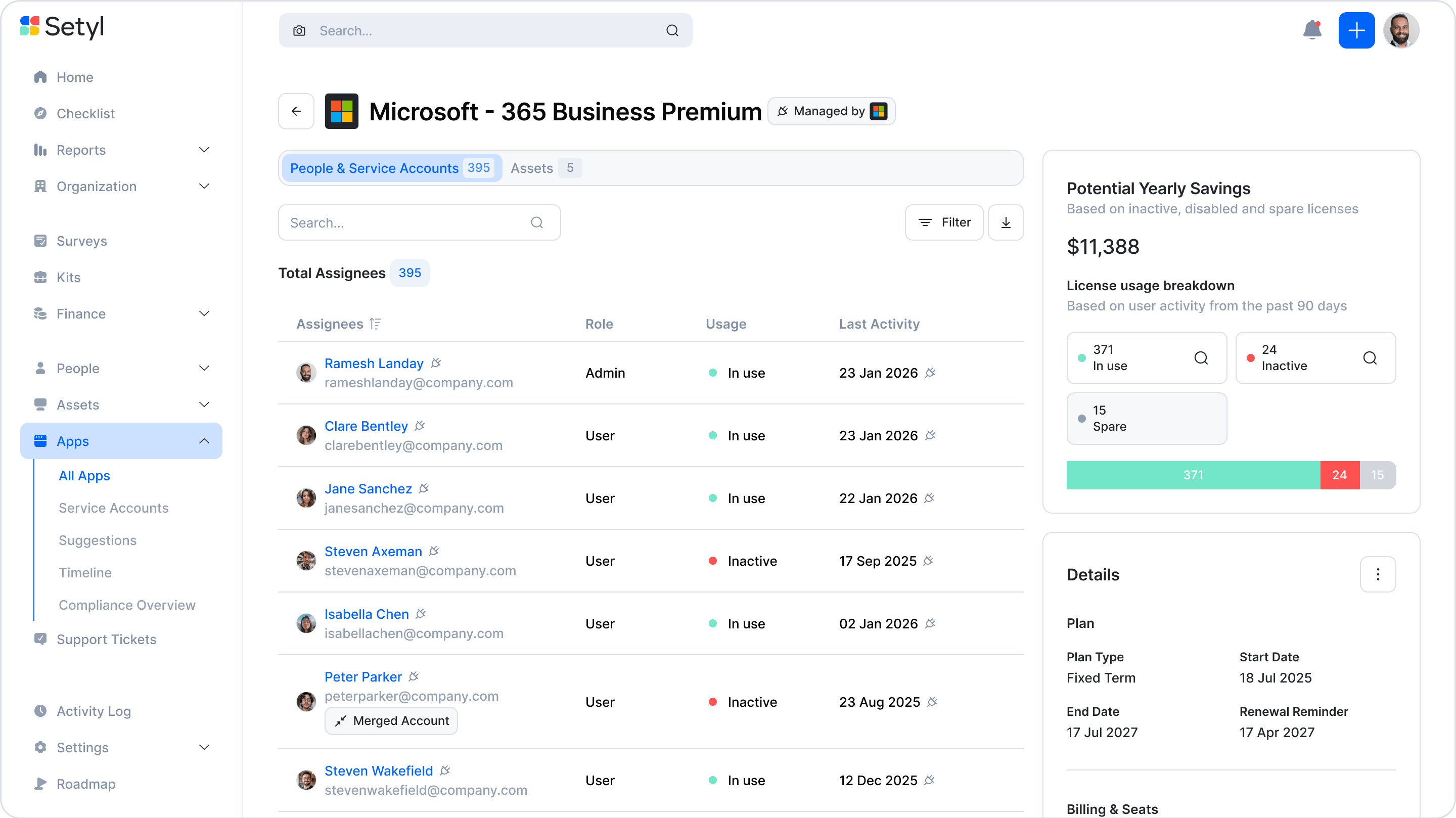 Use Setyl to manage all your hardware assets, software applications, SaaS subscriptions, licenses, vendors, users and spend in one place — helping you to: