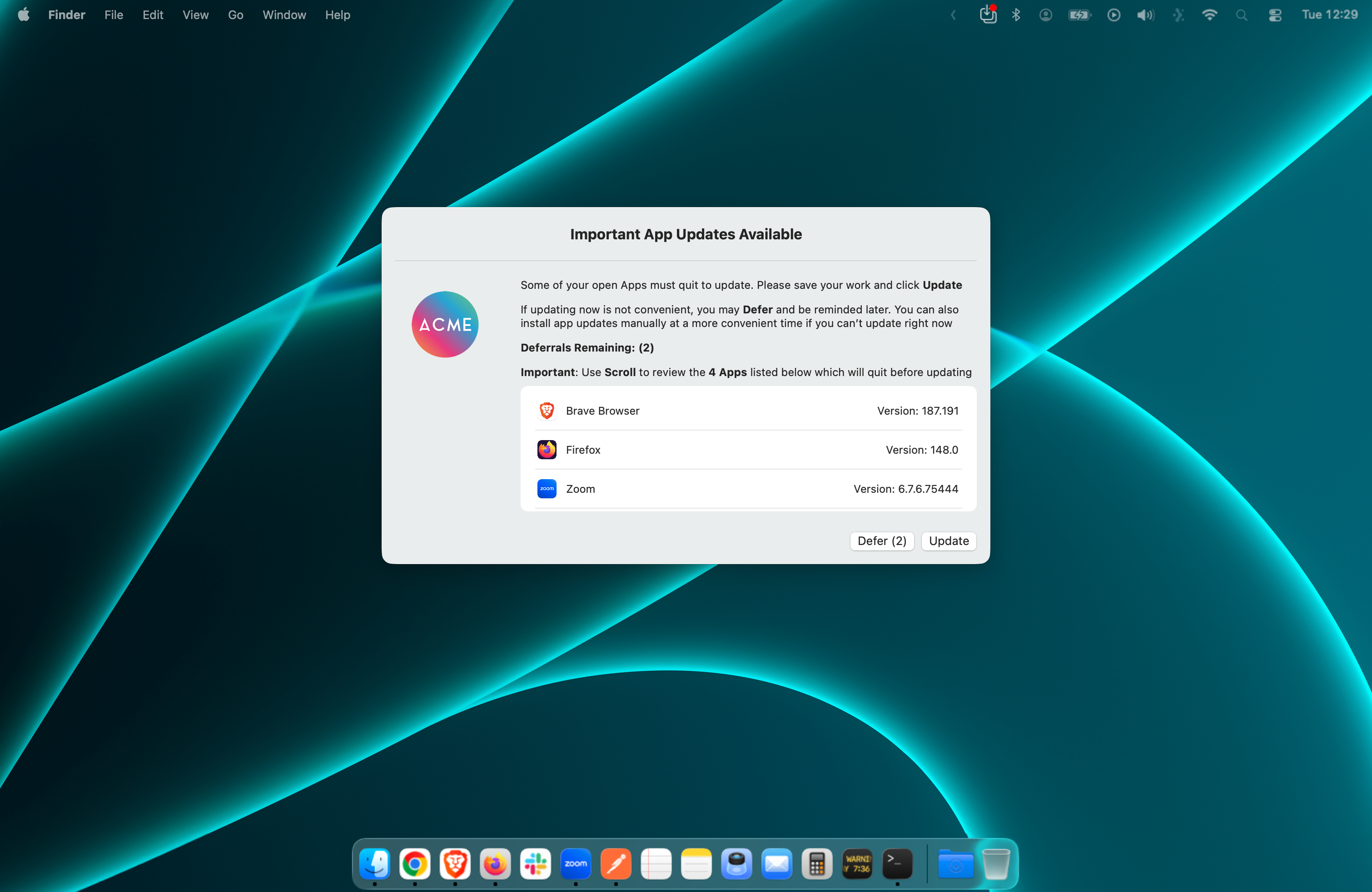 - Flexible Update Deferrals - Set grace periods that let users delay updates when needed, without compromising security