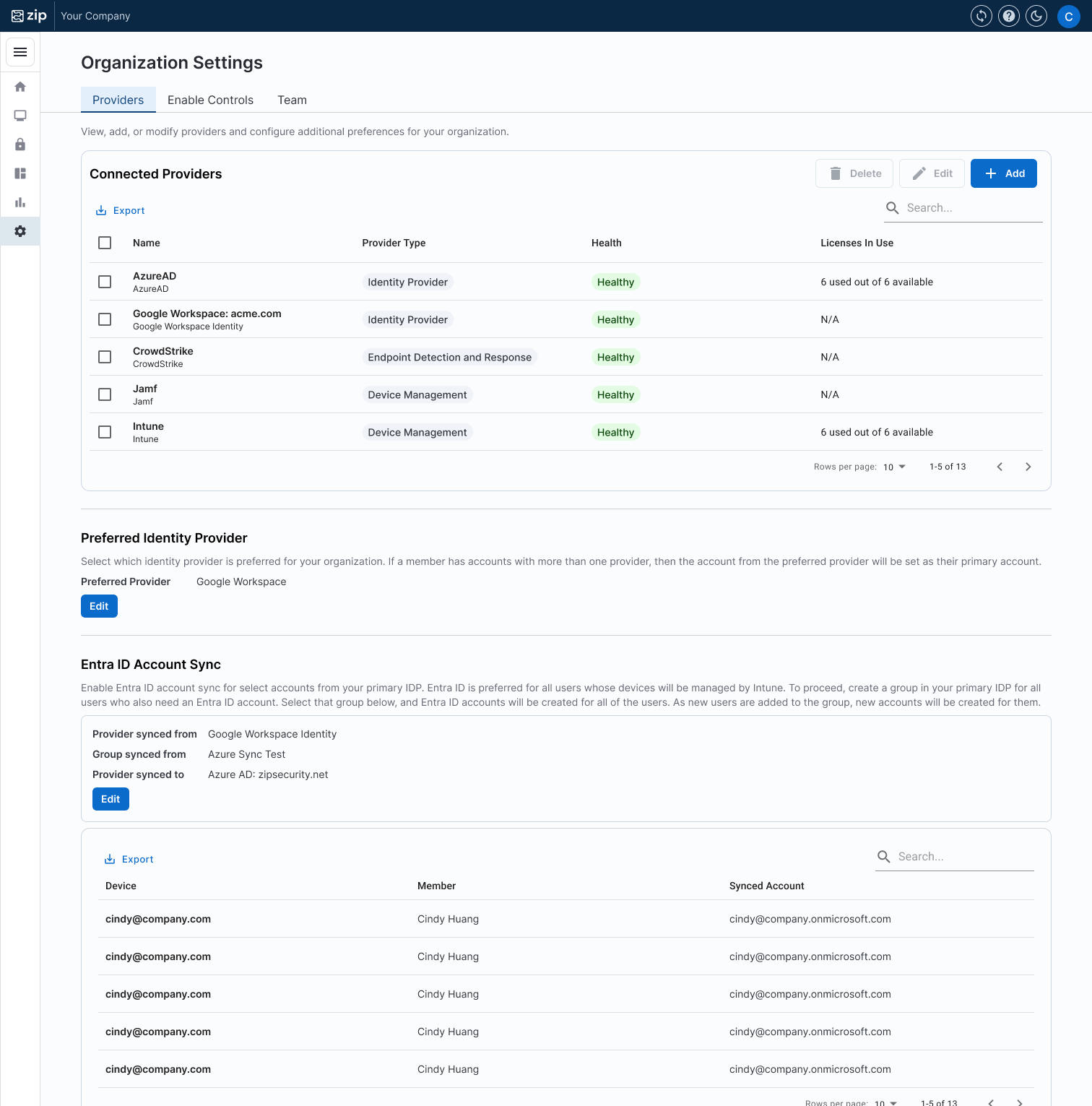 Beyond device management, Zip integrates with your identity provider, antivirus, and enterprise browser, giving you a unified view of devices, identities, and applications in one place. Everyday IT tasks like onboarding and offboarding are streamlined into automated workflows within the platform.